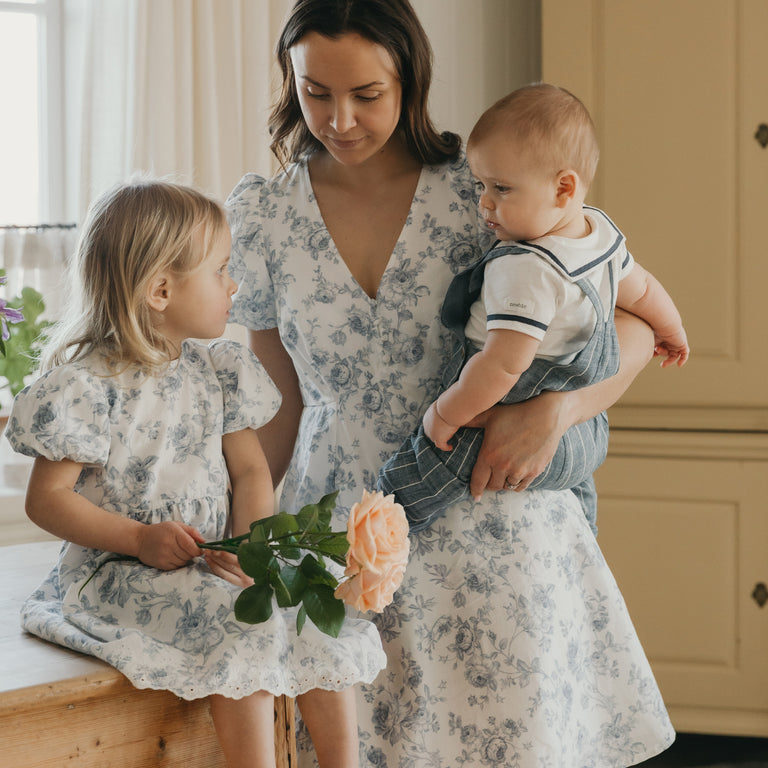 The patterns are all hand-drawn in a soft colour palette close to nature's very own hues. Garments to create a coordinated look with siblings. Garments to be passed down through generations. Nostalgic styles made to endure. We adore matching outfits. Match with siblings and mums. That's why we also offer a Newbie Woman wardrobe. Lovely pieces in the same beautiful patterns. The Newbie world even includes delightful additions to the children's room - the Newbie Room Collection. Storage boxes, toys, and play tents - perfect for transforming the room into enchanting fairytale settings. So many treasures to cherish. We exist to make the future beautiful for generations to come.
